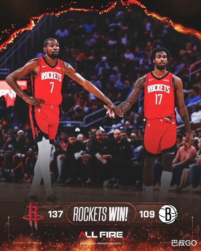 火箭137-109战胜篮网,拿到赛季首场胜利。不容易啊,过去2场对雷霆和活塞,火箭加起来才输5分。这也在一定程度上说明球队的看家本领没有丢掉,就是乌度卡的防守体系。如果你没有防守的话,不可能2场就输5分,早就一溃千里了。火箭开局不利最大问题就是没有范乔丹后进攻便秘,死亡五大目前已经确定失败。