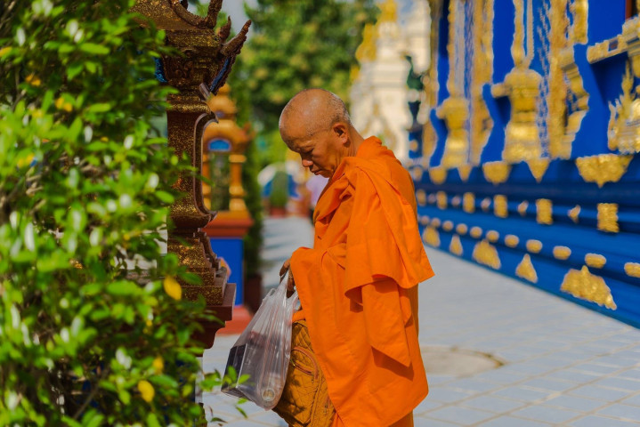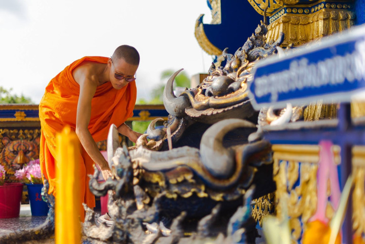 白黑蓝三座庙中,白庙和蓝庙是有僧人修行的真正寺庙,走在庙中常会遇到身穿橙黄色僧袍的僧侣,因此宗教氛围更加浓郁。